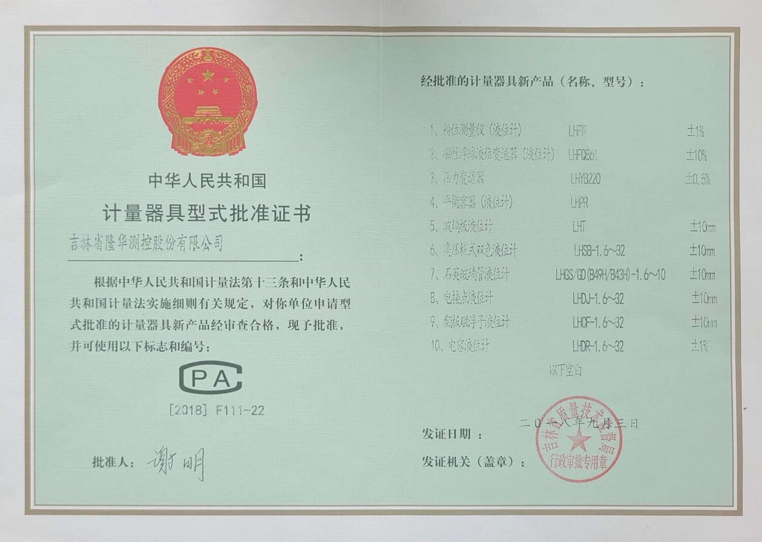 荣誉资质-隆华测控股份有限公司