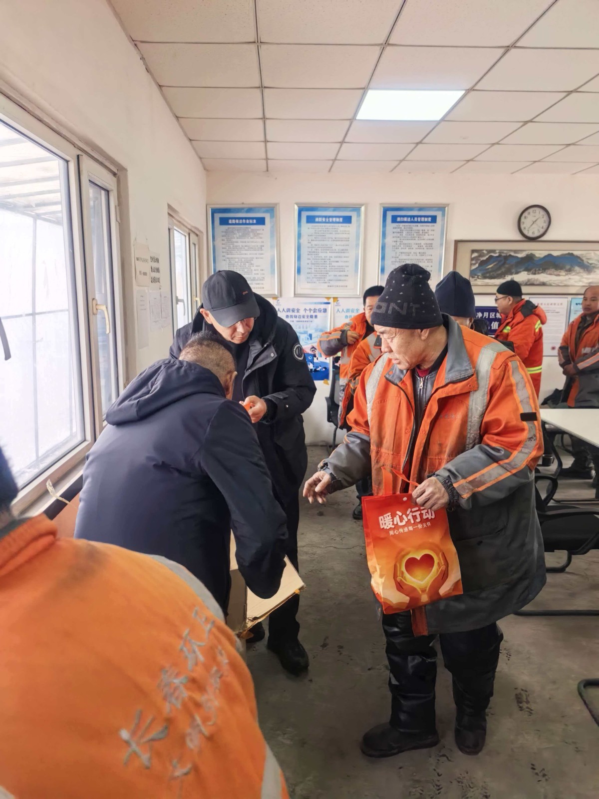 活动首站来到净月区某环卫基地,吉林隆华为一线环卫工人送上定制御寒羊绒帽。这批帽子采用防风面料搭配加厚内衬,兼顾保暖性与实用性,适配冬季户外作业需求。这些满载心意的帽子,为寒风中坚守岗位的城市美容师筑牢温暖防线。